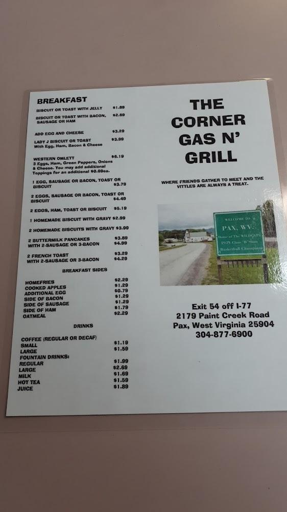 Welcome to Corner Gas and Grill, your go-to destination for delicious American cuisine in Mt Hope, WV. Conveniently located at 2179 Paint Creek Rd, we offer a relaxed ambiance perfect for breakfast, lunch, or dinner. Enjoy our extensive menu featuring local specialties, hearty meals, and excellent coffee, all at affordable prices ranging from $1 to $10. With services including dine-in, takeout, and delivery, we cater to all your dining needs. Our family-friendly atmosphere includes high chairs for kids and accessible facilities for everyone. Join us for a memorable meal where great food and friendly service come together!